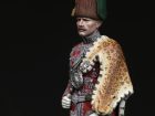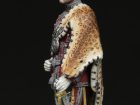 The model is largely a one-piece casting consisting of the head enclosed by a helmet, body in chainmail with a plaid cloak for warmth and legs covered by leggings and footwear. To this, the arms were added separately along with the sword and scabbard (in white metal) and a resin shield.
