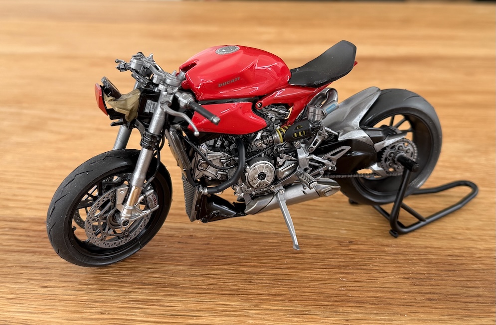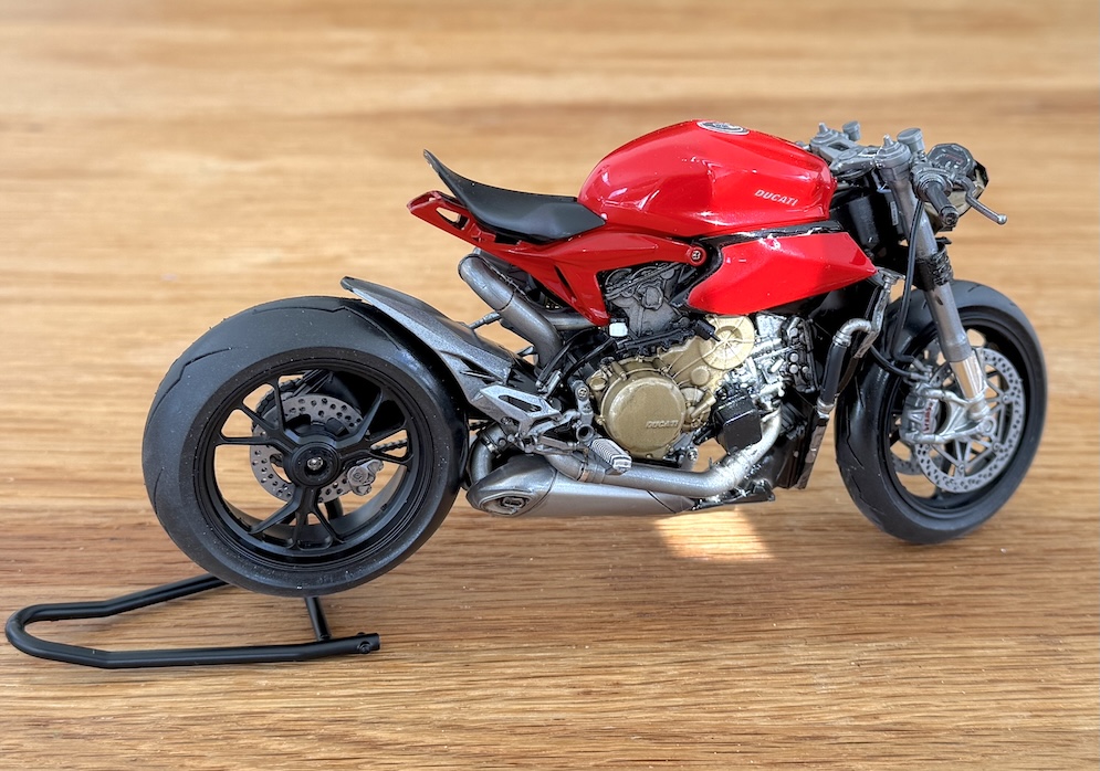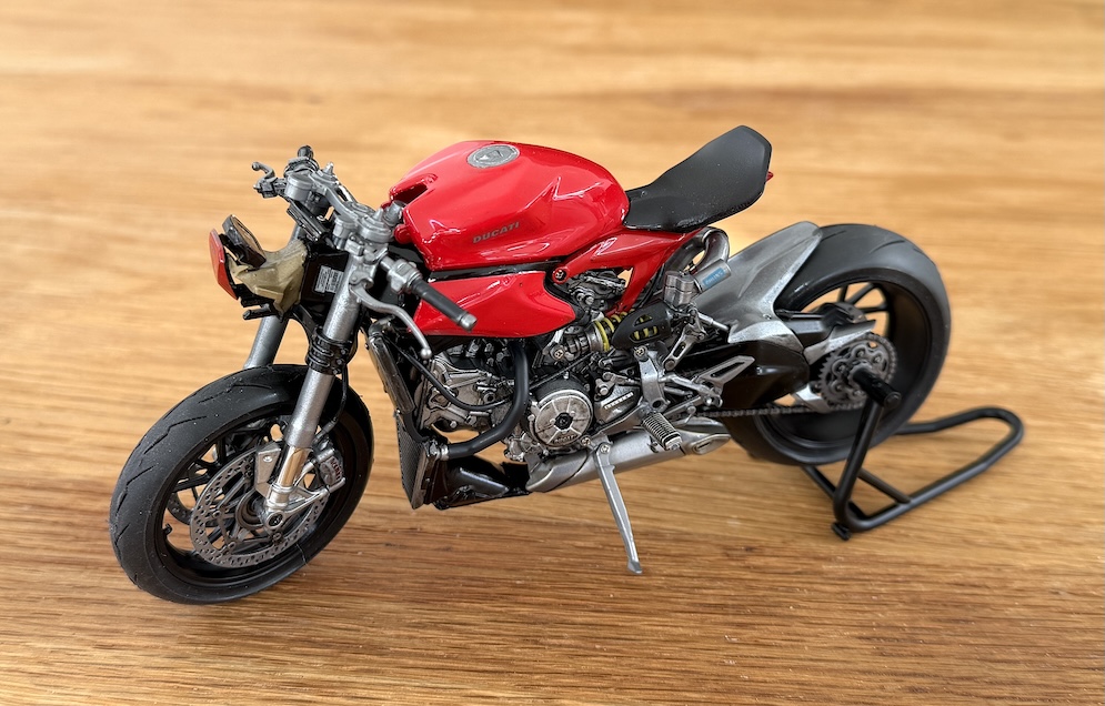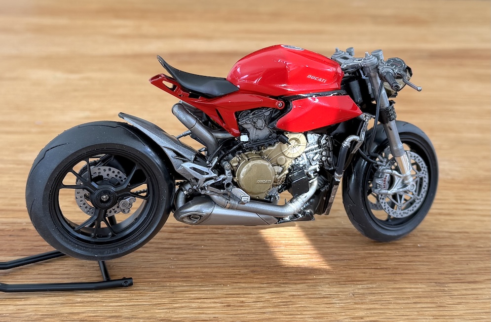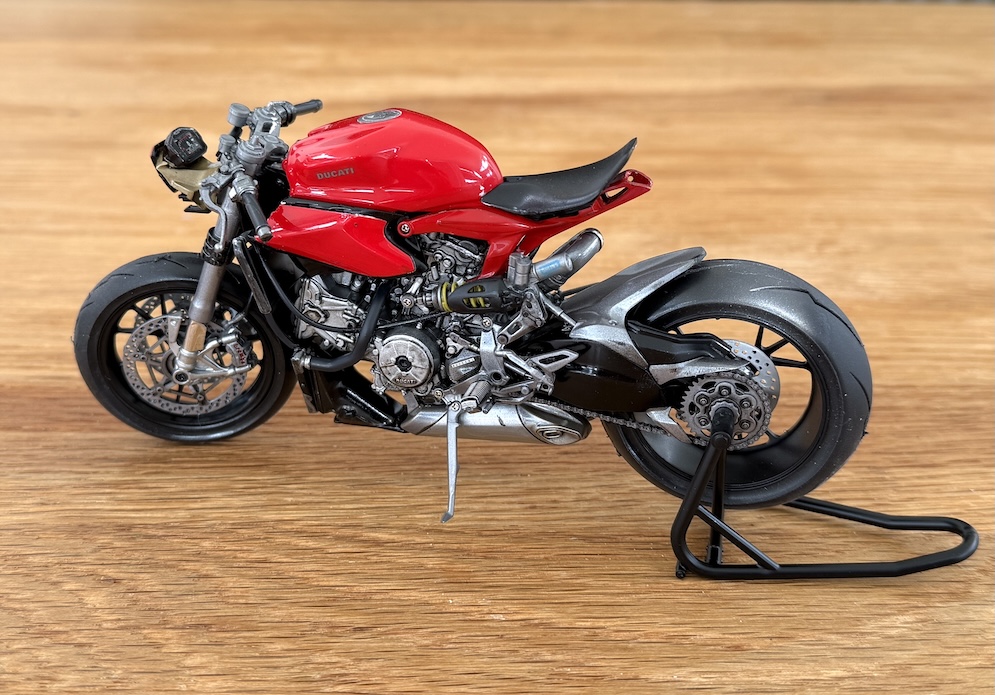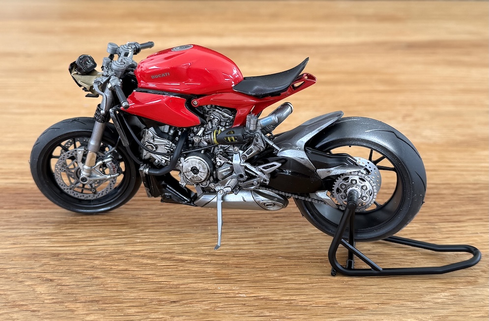 It’s pretty much OTB except for the balsa wood floor in the cockpit and I substituted the kit drive chain for a Tamiya detail up item for 1:6 motorcycles. (1:12 is too small).
