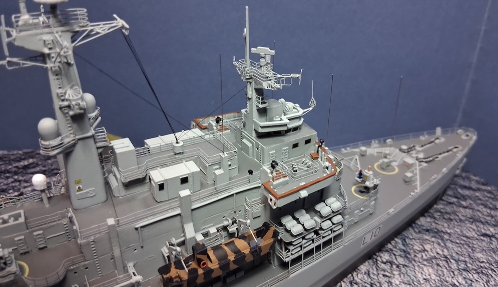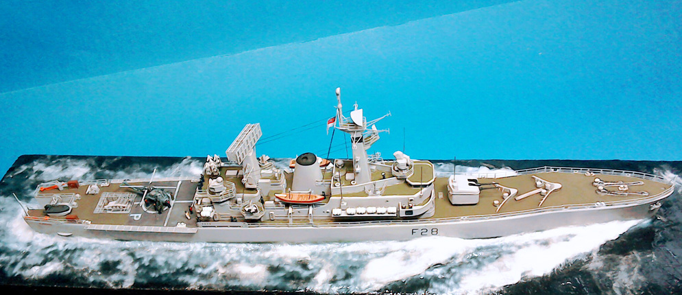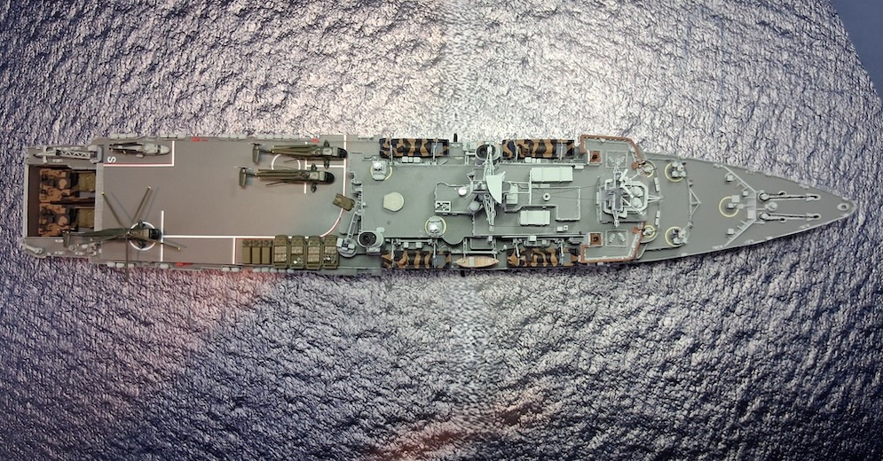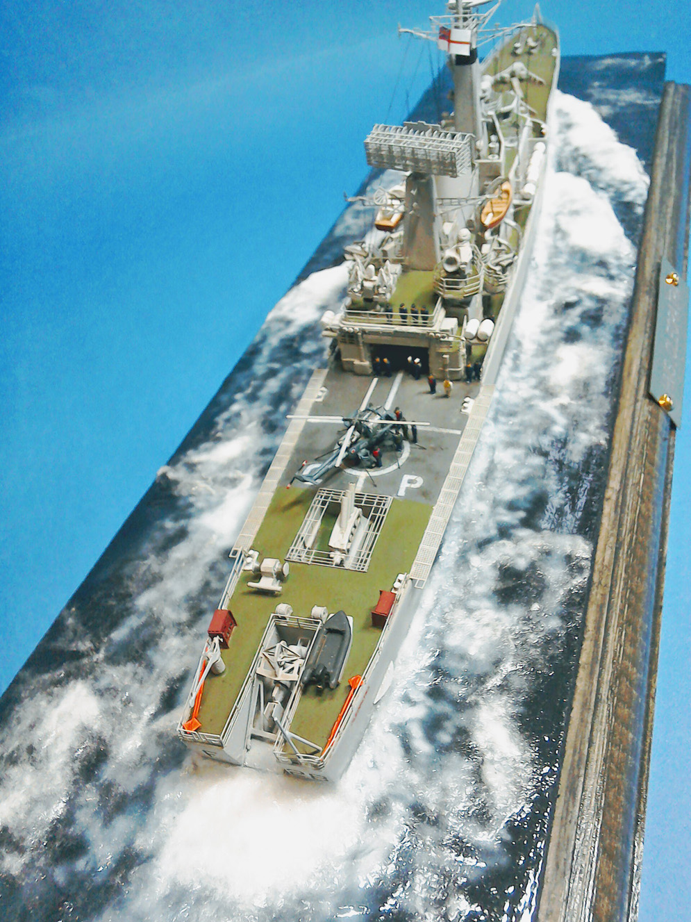 This was built for a commission where the actual Ship’s pennant on her hull side and the client’s number on other.