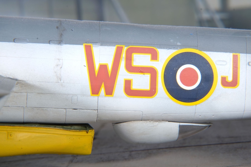 This exercise worked reasonably well in this case, except that one of the underwing roundels was almost completely removed along with the film when I peeled it off. Luckily the roundel could be patched up with part of a spare transfer from the sheet. Following this little setback, I gave up on the whole film removal idea. If some of the other markings such as the lettering on the tail had been damaged, I would not have been able to replace them.