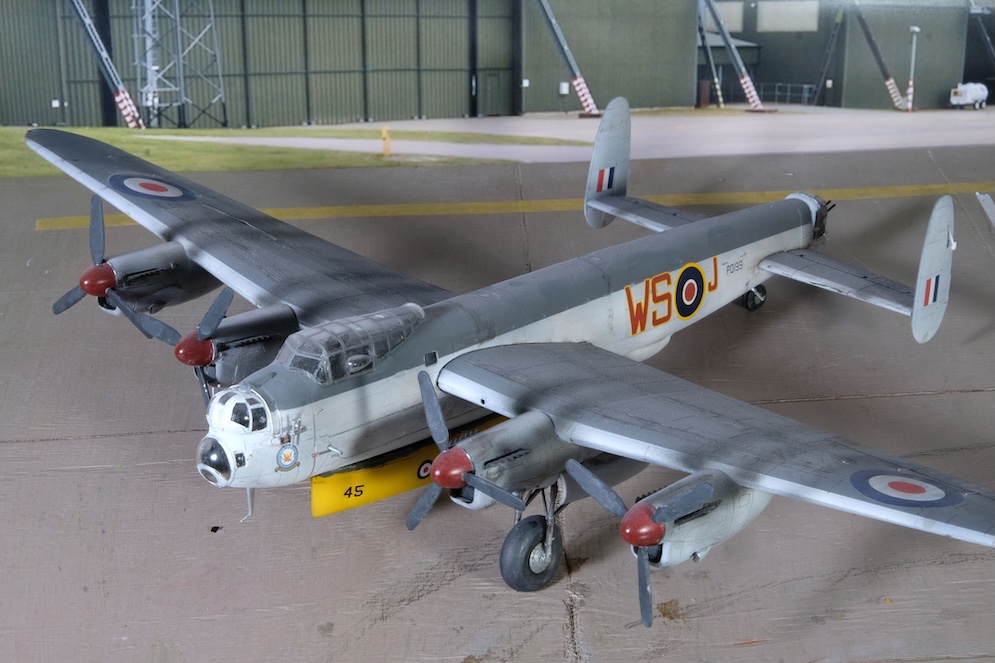 This is the Airfix 1:72 Avro Lancaster built as a 57 Squadron machine based at East Kirkby, Lincolnshire.