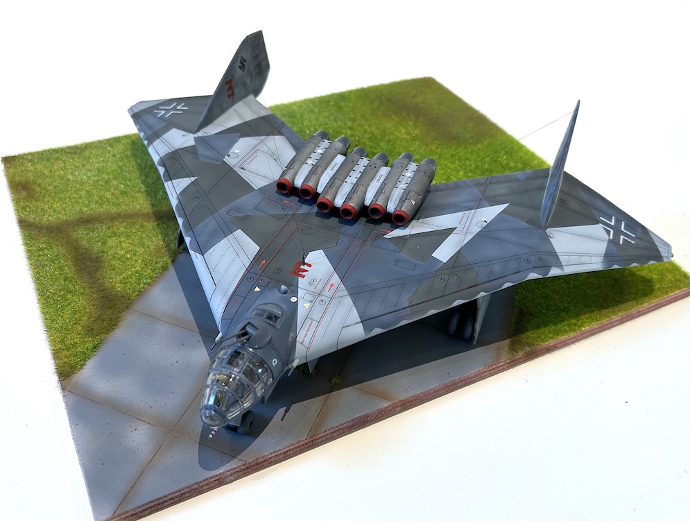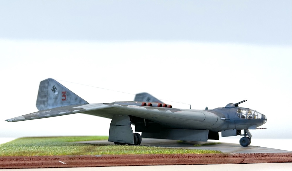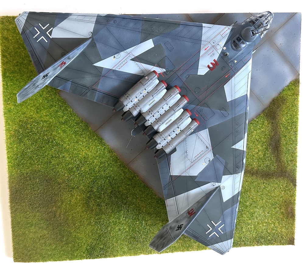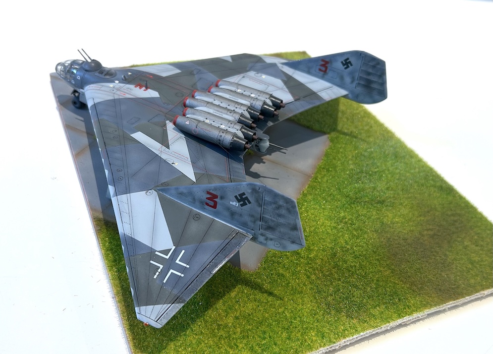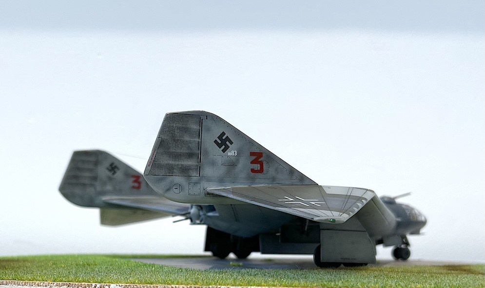 I decided to test a 3-colour camouflage scheme, taking inspiration from the 1930s Luftwaffe schemes, but modified to RLM 74/75/76, imagining something suitable for long flights over the sea.