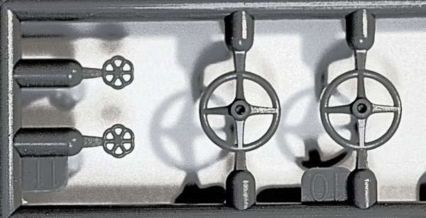 I was also impressed with some nicely moulded pipe valves but what excited me most was the detail on the tiny accompanying hand wheels which could go in the spares box for all sorts of applications.