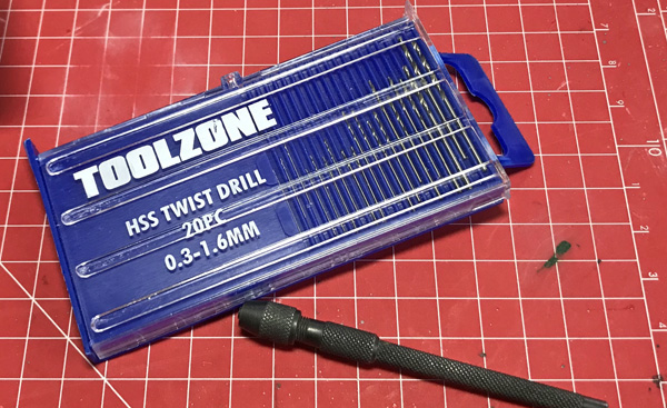 a small hand-held pin vice drill (also very cheap and usually sold as part of a set)