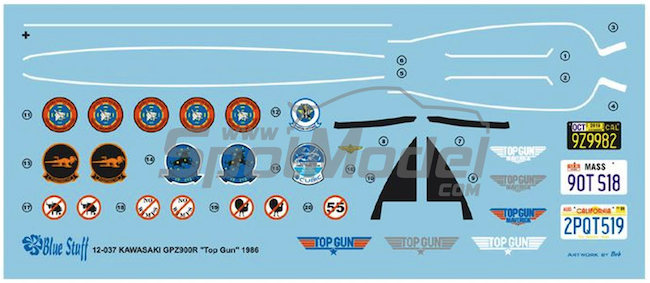 I’d always wanted to do a model of this bike but the markings had been a problem but then two manufactures, Jeight Design and Blue Stuff released decals for this subject. The Jeight Design decal set has the decals for both the original bike in Top Gun and the one in Maverick and it also has a 3D printed number plate as a bonus. The blue stuff set has decals for both of the number plates used on the two bikes in the original movie and as an added bonus it has the number plate decal for the bike used in Maverick.