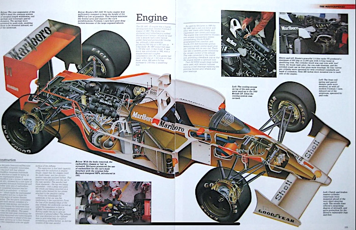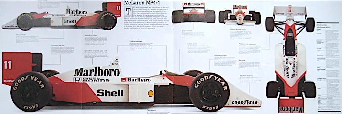 I managed to acquire an old magazine from Orbis Publications that was part of the series “The Encyclopaedia of Supercars’. This particular instalment covered the MP4/4 and had a great fold out centre page that showed the car from all views.