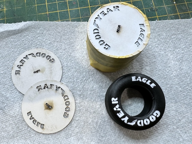 I also didn’t like the idea of trying to attach decals to the tyres for the Good Year Eagle markings so I sourced some masks for these through the internet.
