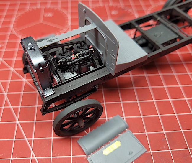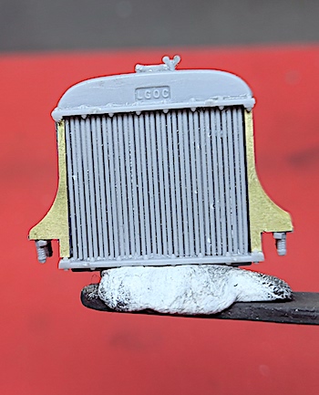 The radiator is a complex build of 18 individual parts including pieces of etch brass. Incredibly, the wingnut on top of the radiator is an individual part!