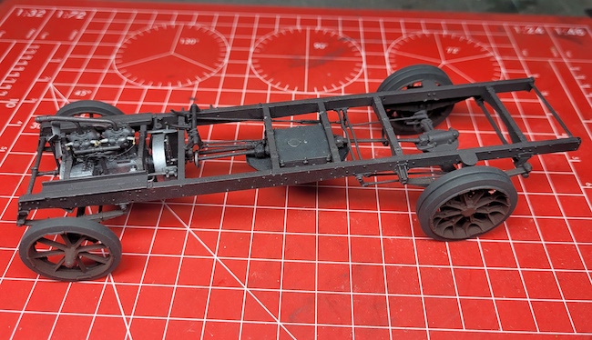 Wheels are painted hull red to the inner section and the tyres are painted with Lifecolor black before fitment to the chassis.