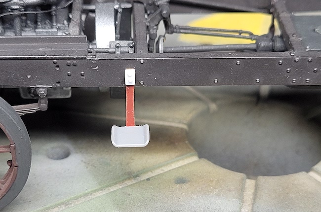 Only the footplate portion of the access step was present on the sprue, therefore scratch building of the attachment bracket was required. Spare etch brass, plastic and stretched sprue for bolts was utilised.