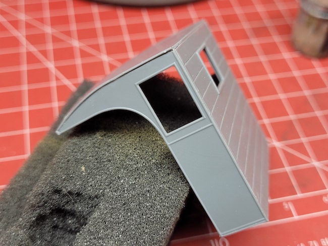 Something went a bit astray when constructing the cab (my fault entirely)! The roof didn’t sit straight and in addition, sprue attachment points on the beading meant that I had to sand off all the beading and replace it with 0.5mm polystyrene rod.