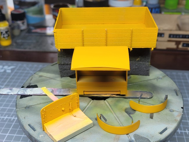 This is nicely painted and appropriately weathered for a working vehicle. Thank you for giving the mixing ratio for your chassis color, it looks very authentic.