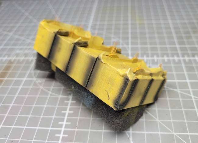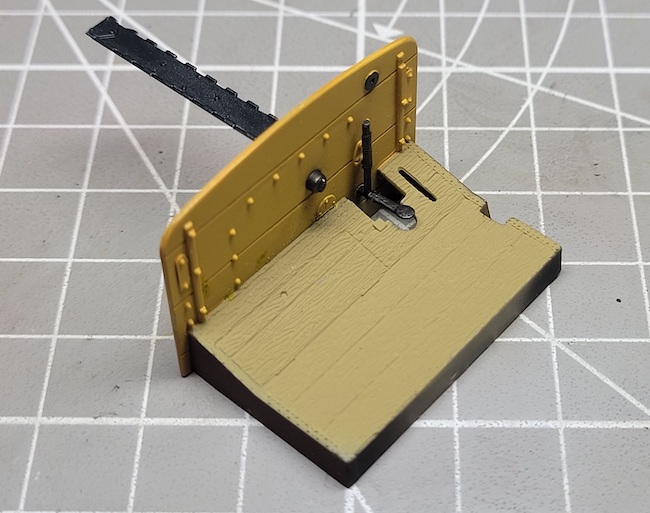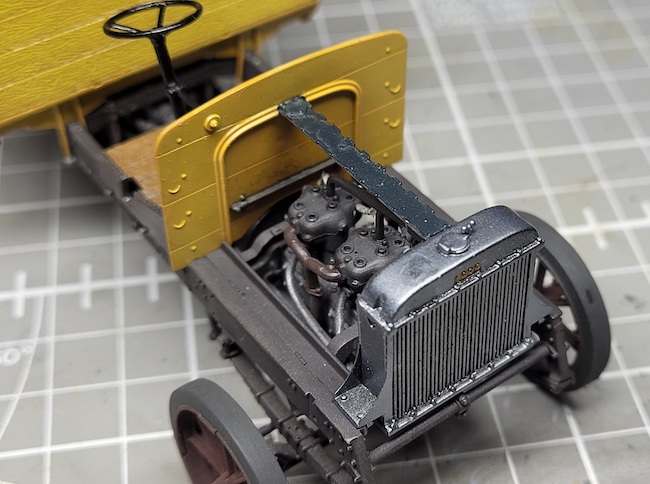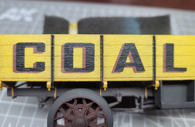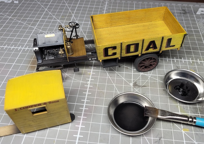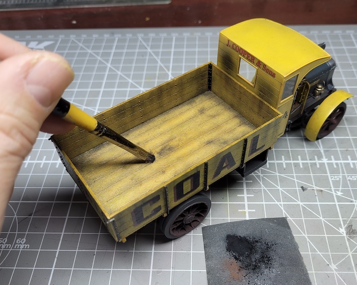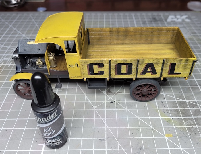 Thinned Abteilung Black oil paint was applied by brush to the yellow painted areas only with a slightly heavier application to the flatbed.