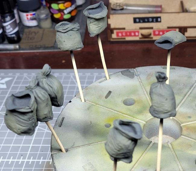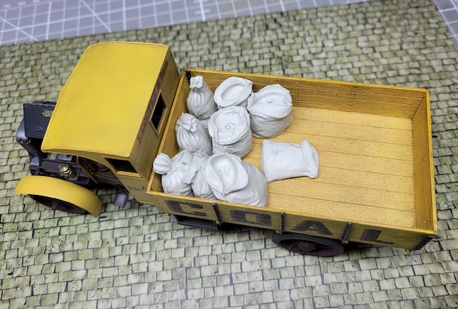 The final bit of weathering was to apply black pastel to the coal and the top of the bags and any simulated areas of holes in the bags.