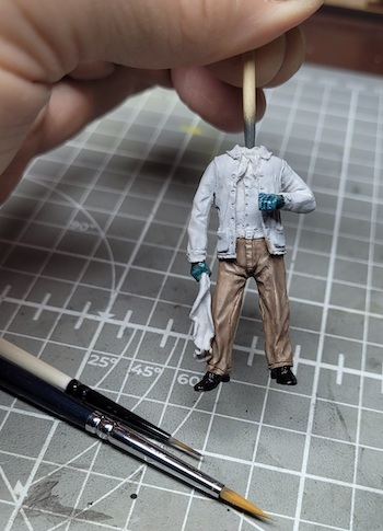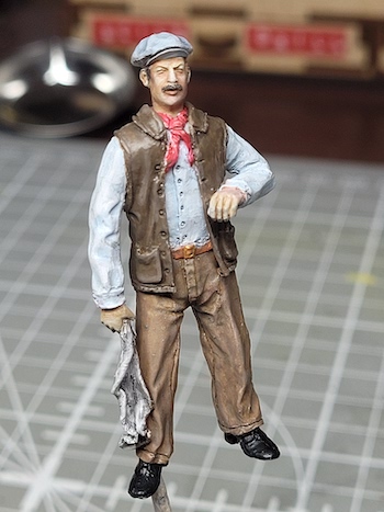 LZ Models civilian workman comes as a rein casting with a couple of options for different arms along with a spade, axe and can with a spout. The figure was coated with grey primer and then painted with acrylics with a final application of a thin wash of black oil paint.