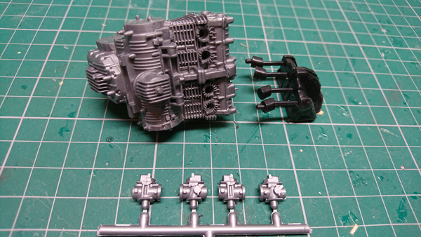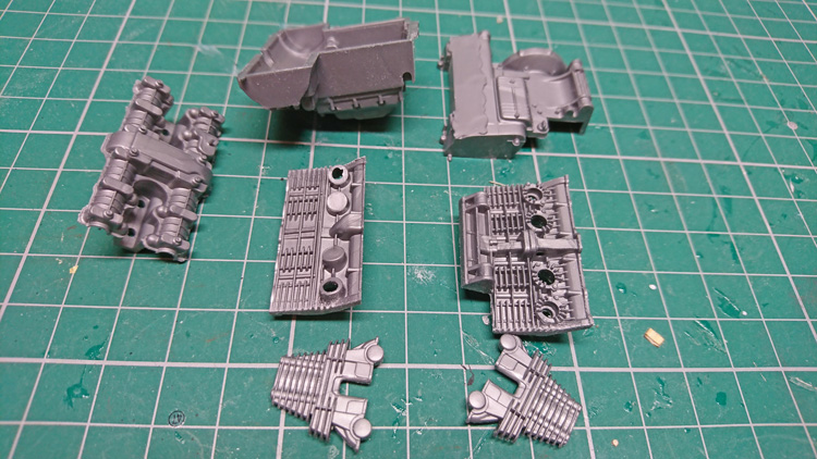 First up was the engine block. The parts were cut off the sprue and cleaned up.