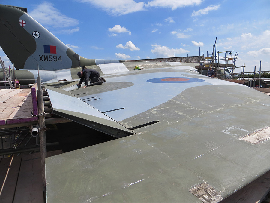 Now that a bespoke scaffolding system has been installed around Avro Vulcan XM594 at Newark Air Museum, teams of museum volunteers are now able to work on this huge restoration and repainting project in safe conditions.
